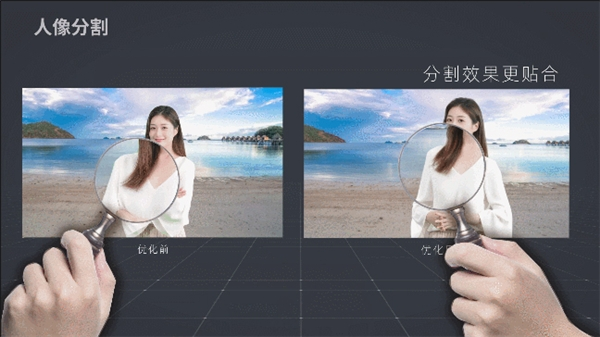 其次,人像分割效果得到了优化,精准贴合人体,不会有明显空隙,人体分割准确性大幅up,减少背景误识别率。