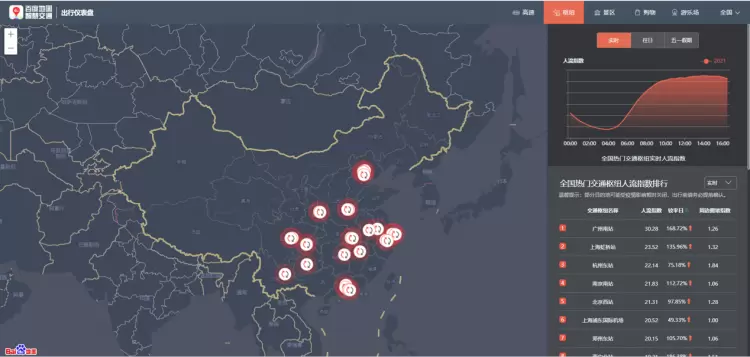 (截至5月1日16:30 百度地图出行仪表盘全国交通枢纽人LIU量)