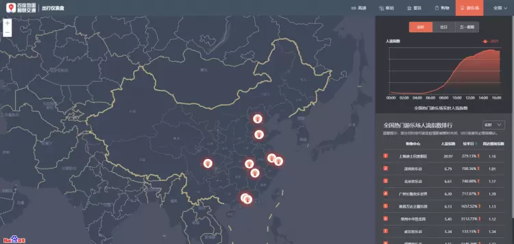 (截至5月1日16:30 百度地图出行仪表盘全国热门游乐场人LIU量)
