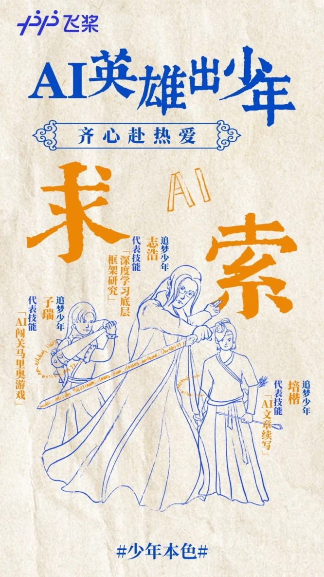 往昔风云起,今朝我辈继。新时代下的AI少年敢想敢做,大步向前,他们不接受定义,向着光就能创造无限可能。这是百度飞桨少年的特质,也是中国AI少年的缩影。我们有理由相信,在一代代AI人的奋斗下,中国AI,未来有期!
