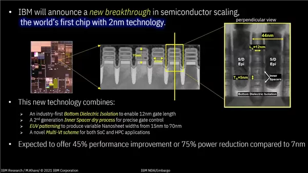 同时,IBM表示,在同样的电力消耗下,其性能比当前7nm高出45%,输出同样性能则减少75%的功耗。