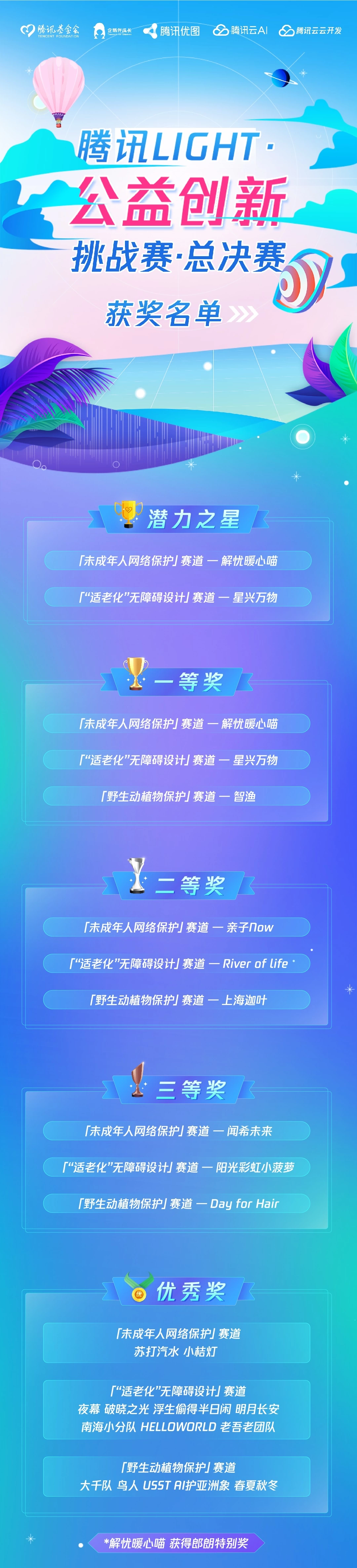 腾讯公司安全管理部总经理朱劲松表示:“科技向善的千里之行是多方参与的马拉松式长跑。本次比赛让我们看到科技硬壳之下包裹着的温情内核,给社会带来更多科技向善的信心和力量。”比赛虽已圆满落幕,但科技公益永不落幕。如何用科技让每一个孩子从小安全上网、健康用网、赋能成长,这个牵动亿万家庭、长期性与紧迫性并存的社会新课题,值得更多人长期为之探索。同时,如何缩小数字鸿沟,保障老年人更便捷、准确及安全地接收和反馈信息,也是当今社会亟待解决的问题。此外,野生动植物保护面临的生存危机,需要更多人努力,共同提升大众在野生动植物保护领域的参与度,共同守护我们的美丽家园。