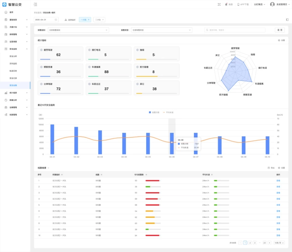 智慧公交云平台还搭建了基于驾驶员画像的智慧安全监管平台,利用行为分析、大数据分析等技术,记录收集驾驶员行为数据(如疲劳驾驶、接打电话、分心驾驶、抽烟行为),构建全面、立体的驾驶员画像。然后系统根据画像,建立安全管理培训系统,提供精准化的安全培训与考核管理,有效地规范和提升驾驶员安全驾驶意识,预防了公交安全故事的发生。