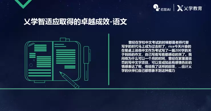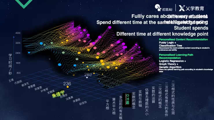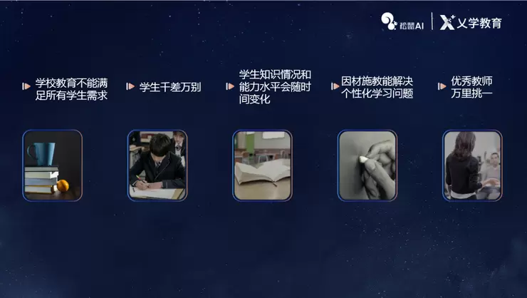 我们做的AI教育应用跟这些不大一样。我们的做法类似AlphaGo和IBM沃森,希望AI模拟一个优秀老师的知识经验和教学经验。我们的使命是通过AI和大数据技术因材施教,将个性化学习规模化,让每一个孩子都能按照自己的特点去学习。过去我们一直在朝这个方向努力。