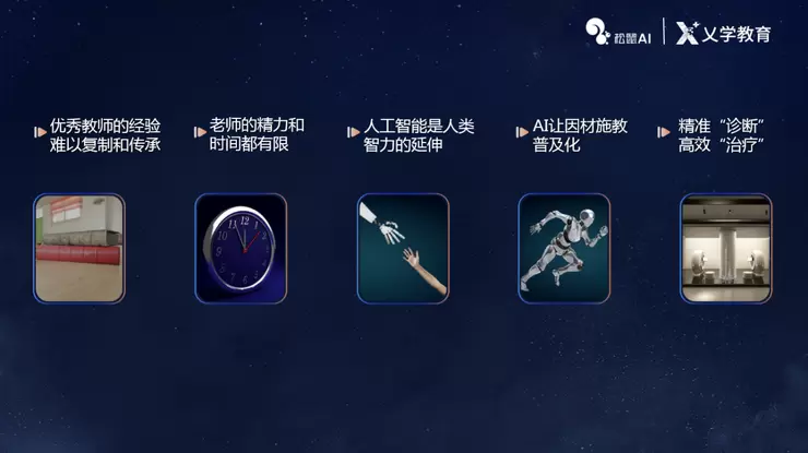 提升能力,光靠传统老师授课肯定不够,未来是“人机共教”的时代。学习通过系统完成,创造力、想象力由老师培养。我们希望未来AI老师是苏格拉底、达芬奇和爱因斯坦的结合体。