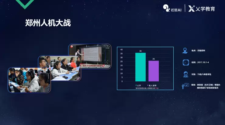 2017年至今,松鼠AI先后在多个城市举行了“人机大战”。让自适应学习系统和经验丰富的公立学校老师进行公平公正的对决,结果显示人工智能自适应学习系统的教学效果要优于人类教师。