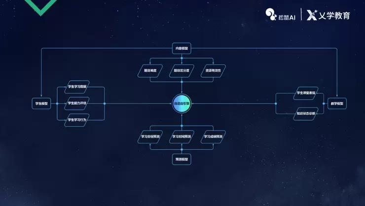 为此,乂学教育从2014年开始研发人工智能自适应学习系统“松鼠AI”。松鼠AI智适应学习引擎包含学生画像、内容模型、教学模型和预测模型四大模块。该系统内含不同类型的教学资源,可以根据学生画像进行精准的教学内容匹配。学习过程中系统会实时监测和评估学生的学习效果,诊断知识薄弱点。同时系统还能预测学生学习某个知识点的效果,以及所需的时间,从而制定最优的战略性学习路径。