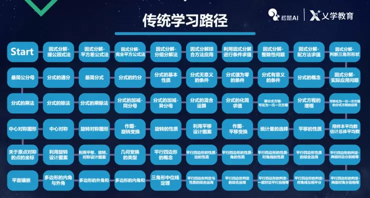 有了AI老师后就不用这样刷题了,比如我们诊断出某个学生有五个知识点需要学习,系统就会规划最佳学习路径。