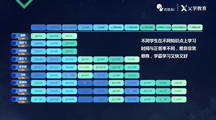 他们的学习路径不一样,不同学生学习同一个知识点花的时间和做题的难度都不一样。