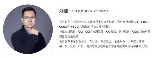 作为加推产品负责人,刘翌拥有17年丰富的互联网产品运营经验,曾经在Oracle和腾讯担任核心管理岗位。