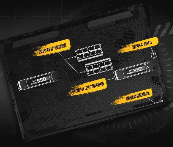 不只是核心硬件拥有充沛性能,为游戏而生的华硕飞行堡垒9样样俱到,在存储方面至高支持64GB双通道DDR4-3200内存与512GBNVMe PCIe SSD的强悍组合,超快的数据读写速度让游戏加载、场景转换更为迅捷,玩家可快人一步到达战场,抢得制敌先机。