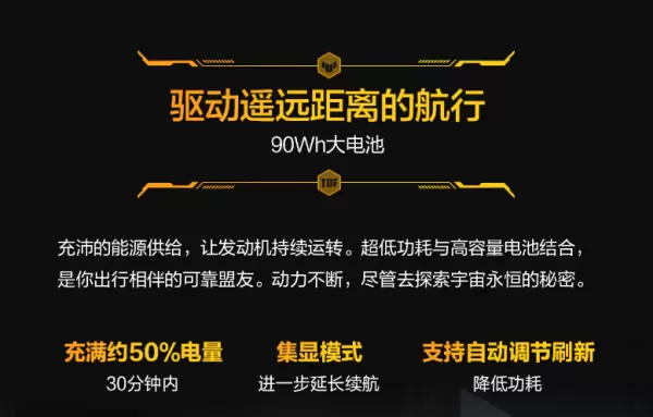 华硕飞行堡垒9还提供了90Wh大容量电池,同时支持快充,30分钟即可充满50%电量,外出与朋友聚会时也能轻松开黑。机身采用时尚的太空灰配色,细如发丝的金属拉丝纹理,在增加细腻质感的同时还能带来防滑手感,并且机器通过了严格的MIL-STD-810H军工级测试,能够承受日常生活中偶然的颠簸和撞击,携带出行无须顾虑。