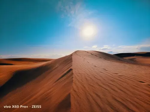 从下图的样张可以看到,vivo X60 Pro+在面对强光源直射的时候,镜头对于眩光的抑制十分到位,完全消除了普通镜头会出现的眩光,让画面的表现更加纯净。在沙漠面对这类强烈光线对比的场景,vivo X60 Pro+的HDR算法也出色还原了眼前的场景,整体的色调也更加浓郁具有美感,在复杂的HDR算法优化下,画面过渡自然,没有出现明显的色彩断层,跳跃。