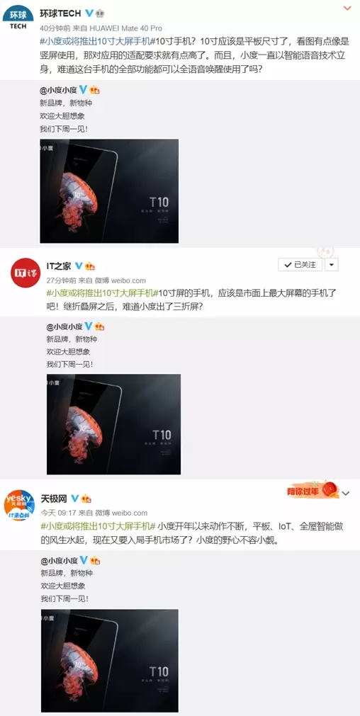 如果小度入局手机市场,会有什么技术突破呢?环球网科技频道分析猜测,小度是以智能语音技术立身,如果推出手机的话,或许也可以全语音唤醒使用;IT之家则关注到了大屏本身,猜测10英寸大屏手机或许是个“三折屏”;也有媒体则感叹,开年以来动作不断的小度,野心不容小觑。
