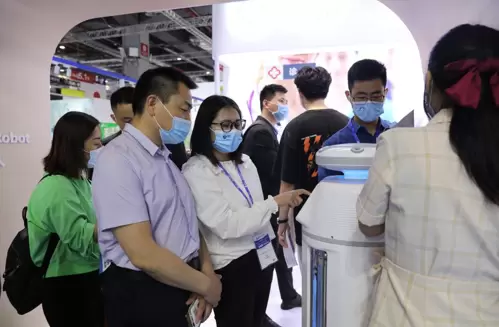 此次CMEF擎朗基于医疗器械核心业务,围绕院内感染控制、医疗物资配送管理、智慧医疗服务三大智慧医疗解决方案进行整合展示,将展区完美还原医院场景,不少国内外来宾频频驻足,垂询产品详情,体现我国健康产业智能化水平和科技创新能力。