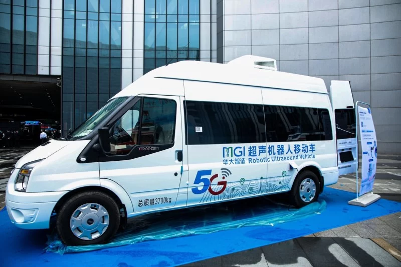5月13日户外展区人流熙攘,华大智造研发的“5G远程超声机器人移动车”引人关注。“5G远程超声机器人移动车”由检查区、信息录入区和血样采集区组成,随车无需配备专业超声医生,即可提供超声诊断一站式服务。该车利用便捷移动+智能化平台系统,结合远程超声机器人、手持超声、AI智能辅助诊断软件,可实现随时随地医学超声诊断及样本采集管理。