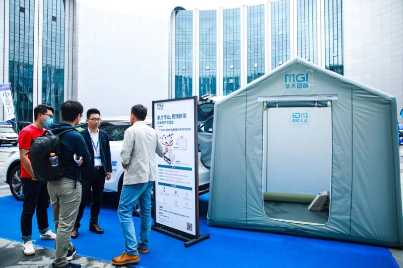 此外,华大智造还带来了最新的移动魔方实验室。现场工作人员介绍,这是一个可以在采样点5分钟内原地快速搭建洁净实验空间,随时随地助力开展基因测序实验,实验室搭载了华大智造自主研发生产的自动建库仪DNBelab-D4、便携式基因测序仪DNBSEQ-E5,具有高度便捷、高度定制等特点,能利用SUV运输,可灵活应用于偏远地区科考、环境检测、食品安全检测等场景,满足多地点便携移动作业需求。