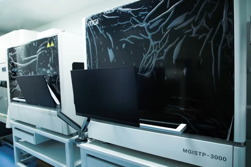 (车内配备全自动MGISTP-3000分杯处理系统和高通量自动化样本制备系统MGISP-960)