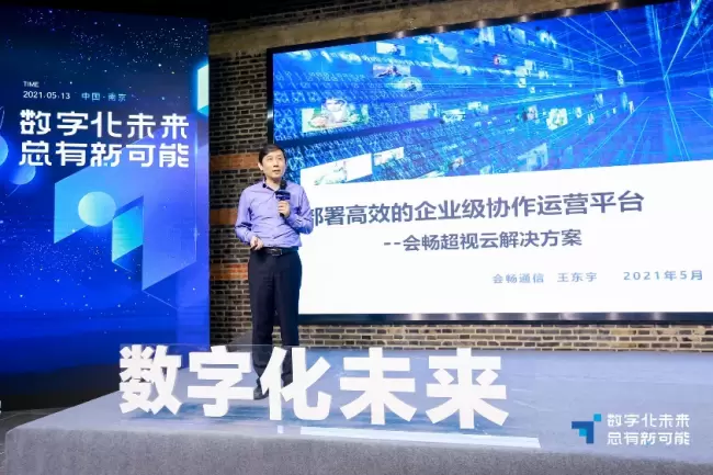 5月13日,南京,会畅通讯副总裁兼CTO 王东宇受邀参加由江苏省企业信息化协会与南京市智造促进中心联合主办的“2021企业数字化转型生态交流会暨两化融合及数字化转型解决方案环省行南京站”活动(以下简称活动)。现场,王东宇以“新基建+部署高效的企业级协作运营平台”为主题展开分享,与参会嘉宾共话企业数字转型实战新技术、新理念、新思路。