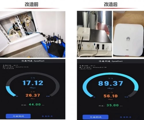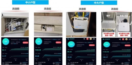 政企场景延伸:对于中小微企业办公场景,企业自组网方案导致Wi-Fi体验和管理问题频发,急需运营商级组网服务,青海黄南电信率先在政企业务场景实施整改,使用华为Business FTTR方案,在同等100M签约带宽情况下,12人同时Wi-Fi上网,相比整改前,测速提升5倍以上,端到端时延降低20%。