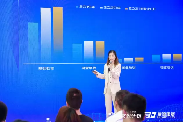 伴随着教育行业在疫情期间的爆发式增长,各大教育品牌的拓客诉求被不断放大。作为国内第一梯队的手机厂商之一,vivo通过其先天的营销优势,为客户积累了真实且有效的超级用户池。vivo互联网KA渠道&品牌广告商务总监孙雷在会上提到,根据公开数据报告显示,vivo在2021年第一季度中国市场智能手机销量同比增长了79%,位居中国市场第一。而庞大的用户之下,每一部独立手机具有专属标识符,代表着与广告主沟通的都是真实的用户。在vivo营销的超级流量池的加持下,可以实现广告主对更全面、更多维、更底层的数据维度进行识别经营,从而与真实而完整的用户建立联结。