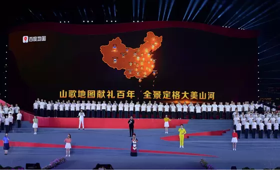 2021年,为纪念中国共产党成立100周年,文化和旅游部在全国范围内组织开展“唱支山歌给党听”大家唱群众歌咏活动。5月16日,文化和旅游部相关领导出席在四川南充举办的活动开幕式,并联合百度地图共同启动了全景山歌地图的上线仪式。依托百度地图海量的地图数据,山歌地图标注爱国歌曲诞生地、唱响地或歌唱地,并全景呈现各省市新时代风貌。用户只需点击活动页面图标,即可跳转至该城市的标志性全景,聆听经典歌曲、了解背后的山歌故事。