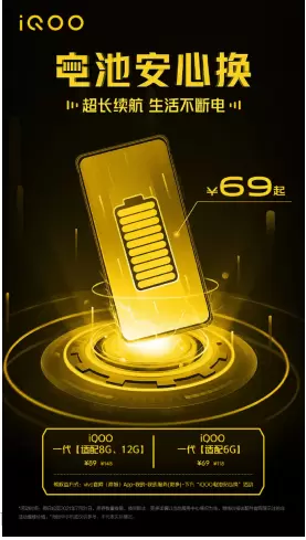 iQOO一代电池安心换仅69元!售后服务堪称行业标杆