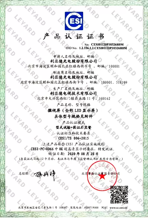 事实上在2020年,利亚德8K Micro LED超高清显示屏就已经获得权威8K认证,目前,利亚德也已经成为国内首家获得8K认证的LED超高清显示屏企业。在推动国内超高清产业应用落地方面,也做出了极大的贡献。