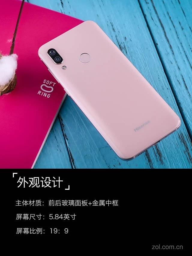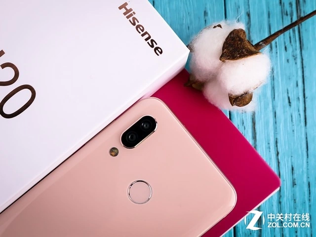 机身背部,海信AI手机H20采用了3D四曲面玻璃面板,金属中框顺滑连接,搭配贴合手掌的弧度,单手握持时触感极佳。海信AI手机H20背板的右上角有竖置双摄。背部的居中靠上位置放有指纹识别模块,单手握持时,食指刚好可以放到指纹识别区域。