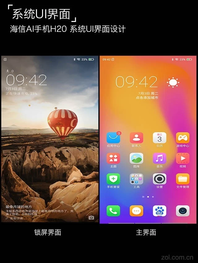 海信AI手机H20搭载了基于Android 8.1的Vision 5系统,整个系统采用了明亮调的设计语言,整体看上去有一种身心愉悦的观感。