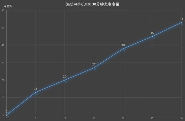 虽然海信AI手机H20的续航成绩略差,但是得益于QC3.0的快充,半小时充电成绩为53%,出门在外基本不用担心手机的续航。