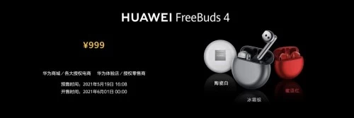 HUAWEI FreeBuds 4无线耳机已于5月19日16:08开启预售,售价999元。6月1日 00:00正式开售,用户可通过华为官方商城、各大授权电商、华为体验店及授权零售商进行购买。HUAWEI X GENTLE MONSTER EYEWEAR II智能眼镜彩色镜片系列也于5月19日16:08,在华为商城、华为天猫官方旗舰店及线下华为体验店同步开售,售价2699元起。