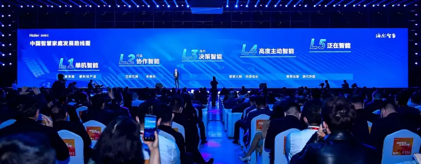 正因为布局最早、探索最深,在提供场景方案方面海尔智家无疑拥有最高发言权。现场,海尔智家发布了智能家居行业发展5级路线图:经历了单品智能、协同智能、决策智能后,未来将实现高度主动智能和泛在智能。目前,大部分企业还处于单品智能或者协同智能阶段,海尔智家已经率先进入了“决策智能”行业最高阶段。这个阶段的差异表现是:从设备之间的连接和人机控制,升级到设备主动感知、学习、决策,带来主动服务。
