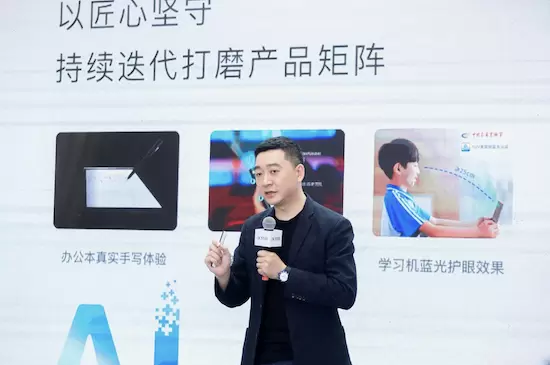 第二是匠心,赵翔以讯飞智能办公本的“真实手写体验”的举例,未来实现办公本真实的手写感觉,经过通过真实A4纸张反复测试,最终确定了0.1毫米悬空的设计。同时还使用纯羊毛材质制作笔芯,让用户能够找到笔尖在纸张上书写时的沙沙感。同样的例子还有智能录音笔的“8颗麦克风阵列”、学习机的“蓝光护眼功能”,背后都是讯飞“以万千锤铸一器”的匠心坚守,持续打磨迭代产品。