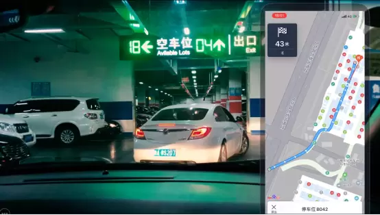 除了车道级导航能力不断提升外,百度地图还针对停车场景,创新打造了智能停车解决方案,高效解决“停车难”问题。在指引车主进入停车场后,百度地图可为车辆自动分配空闲泊位,并通过导航规划,快捷引导车主到该泊位进行停放,极大地提高了停车效率,帮助用户精准到达目的地。