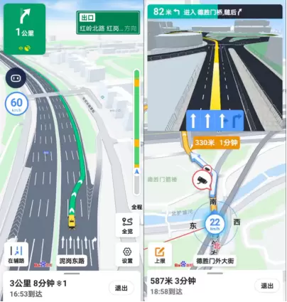 针对驾车出行场景,百度地图升级版车道级导航能力,能够更加精细地还原真实道路场景,并结合更加直观的诱导服务、更加清晰易懂的语音播报提示等,“沉浸式”地引导你进行转向变道,为你的安全驾驶保驾护航。