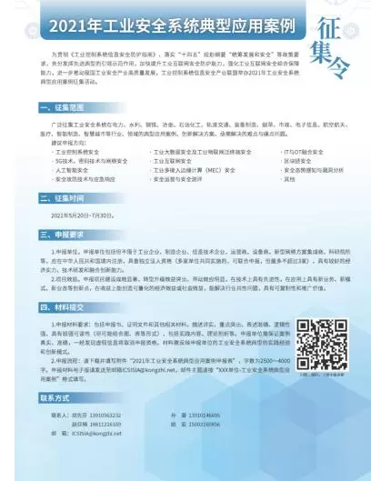 为贯彻《工业控制系统信息安全防护指南》、落实“十四五”规划纲要“统筹发展和安全”等政策要求,充分发挥先进典型的引领示范作用,加快提升工业互联网安全防护能力,强化工业互联网安全综合保障能力,进一步推动我国工业安全产业高质量发展,工业控制系统信息安全产业联盟于会议期间正式开启2021年工业安全系统典型应用案例征集活动。