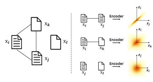 在医疗查询领域,天衍实验室提供了多种医疗文档检索功能,如相似病例检索,基于医疗文档的检索与问答等。由于检索速度和内存占用的需求,文档哈希在现今的大规模信息检索系统中扮演着越来越重要的角色。大量工作表明,医疗文本之间的语义以及邻居信息在该文本的编码和表达过程中往往扮演着更重要的角色,也对生产高质量哈希码起着关键作用。为了将两种信息良好地融合,在论文中,天衍实验室将邻居信息建模在基于图诱导的高斯分布中,并通过图驱动生成模型将语义和邻居信息融合。