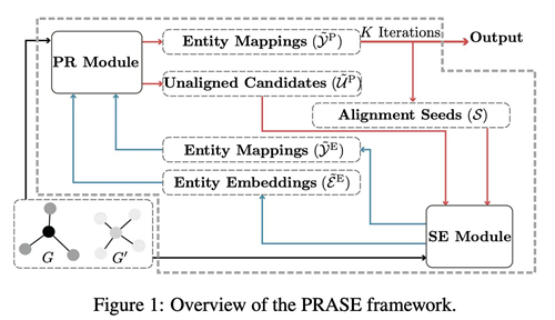 现有的知识图谱对齐方法大体上可以分为基于推理的传统方法和基于神经网络的方法,两者有各自的优势但又存在着各自的问题:基于推理的传统方法无法有效利用知识图谱的图结构信息,而基于神经网络的方法无法利用适当的推理来减少错误对齐。因此,天衍实验室提出了一种迭代框架(PRASE),将两种方法有效地融合,来达成相互增强的目的。天衍实验室的PRASE框架可以兼容传统方法PARIS和多种神经网络方法。在多个公开数据集和一个工业数据集(医疗知识图谱)上均表现出了PRASE的SOTA性能。