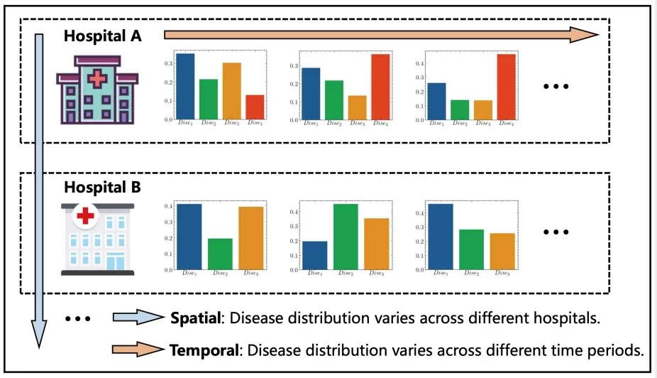 在实际业务场景中,辅诊系统需要落地到不同的医院,而不同医院的接诊病例、疾病体系存在较大的差异,研究人员不断接到新的医院数据,遇到新的疾病类别。随着数据量的增多,结合全量数据进行模型训练会耗费大量存储和计算资源。面对此问题,研究人员考虑将其建模为一个增量学习的过程,即以序列形式,训练多个机器学习模型的任务,保证模型对新旧类别的数据均具有良好的识别性能。