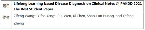 近日,自然语言处理(NLP)领域的顶级会议ACL 2021(Annual Meeting of the Association for Computational Linguistics)和人工智能领域的顶级会议IJCAI 2021(International Joint Conference on Artificial Intelligence)相继揭晓论文录用结果,专注医疗人工智能与大数据技术研究的腾讯天衍实验室共有3篇长文被ACL 2021主会录用,1篇长文被Findings of ACL录用,1篇长文被IJCAI 2021录用,论文内容涵盖信息抽取、问题生成、文档检索以及知识图谱对齐等经典NLP研究方向。此外,在近期公布的数据挖掘领域国际会议PAKDD获奖名单中,腾讯天衍实验室在疾病预测领域的最新研究进展也荣获了最佳学生论文奖项。