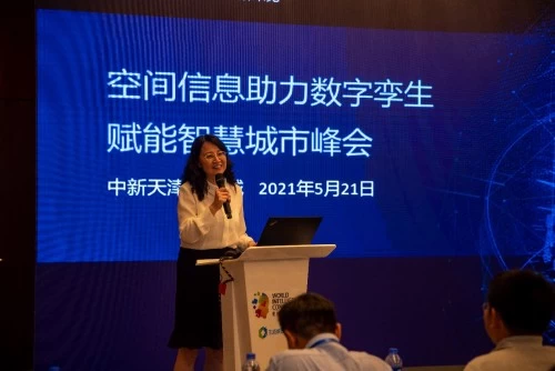 5月21日,在第五届世界智能大会上,由国家互联网信息办公室信息化发展局指导,天津市互联网信息办公室、世界智能大会组委会、中新天津生态城管理委员会、中国地理信息产业协会空间大数据技术与应用工委会、中国软件行业协会(CIO)信息主管分会、中国智慧城市百人会共同主办,中新天津生态城智慧城市发展局和易智瑞公司共同承办的“空间信息助力数字孪生赋能智慧城市峰会”同期举行。