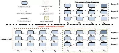 此外,传统长文本模型(Transformer-XL等)中Recurrence Memory结构的循环方式限制了模型的有效建模长度。ERNIE-Doc将其改进为同层循环,使模型保留了更上层的语义信息,具备了超长文本的建模能力。