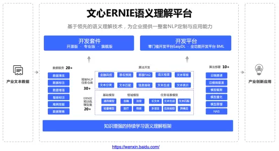 作为“人工智能皇冠上的明珠”,NLP领域向来是人工智能技术研发与落地实践的前沿。百度文心平台基于领先的语义理解技术,帮助企业在NLP赛道上跨过技术、工具、算力、人才等门槛,对开发者和企业进行开放,全面加速NLP技术助力全产业智能化升级进程,为AI工业大生产插上智能的“翅膀”。