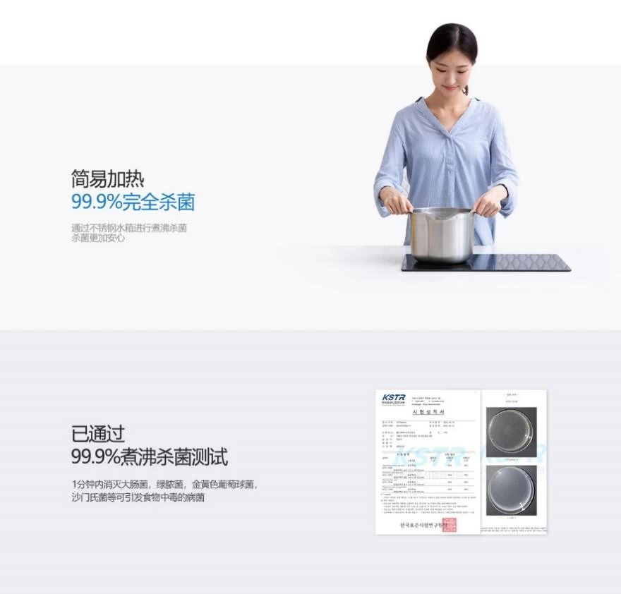 如果觉得它空有一副皮囊,那就大错特错了。除了高颜值以外,它的品质也是获得了国际上的认证哦!拥有各项专利技术,内部水箱使用SUS304含铜离子不锈钢专利材质,有效抑制细菌的滋生,并且可以煮沸杀菌,达到99.9%完全杀菌效果。