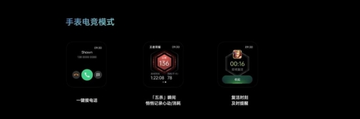 据发布会现场曝光,OPPO Watch 2系列支持电竞模式和拍照功能。用户在玩手机游戏时,可以在手表上接听电话、查看信息,记录游戏过程中的心率和卡路里等数据,还能显示角色复活倒计时,让用户在等待复活时也能放松一下。拍照助手功能不仅支持用户在手表上实时预览画面,还支持遥控拍照。另外,在续航方面,OPPO Watch 2系列似乎也已实现飞跃,其电量续航甚至可以满足用户在中国最南端和最北端的城市之间自驾往返所需。