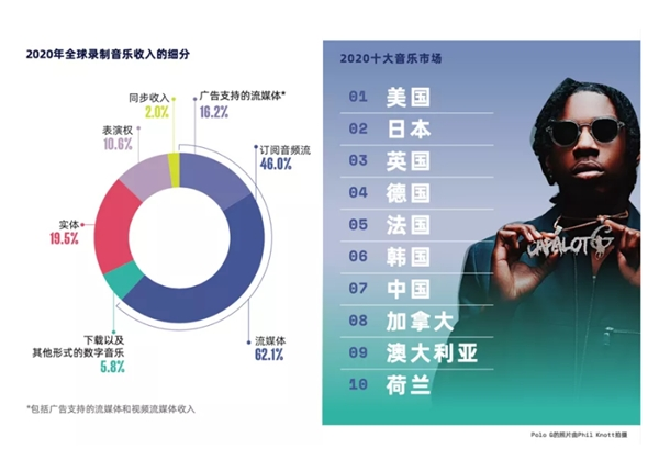 纵观全球音乐市场,中国互联网音乐公司的多样化尝试已经走在了世界前列。所以中国音乐市场才会成为全球前20强中增速最快的之一。2020年,中国录制音乐市场的收入增速高达33.6%。