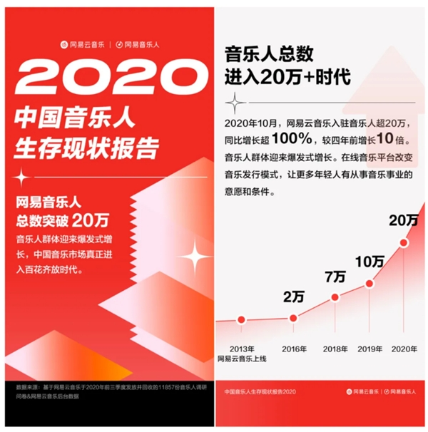 根据网易云音乐去年发布的《中国音乐人生存现状报告(2020)》,入驻平台的音乐人粉丝量平均增长1800%。
