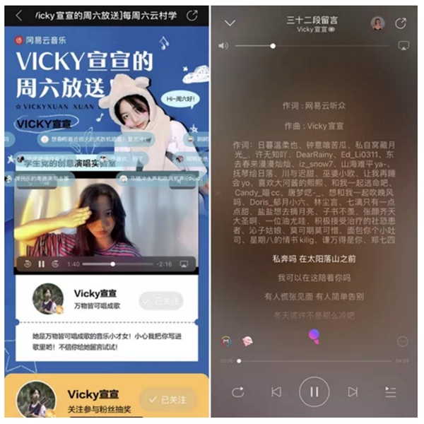 在网易云音乐上,Vicky宣宣靠发布个人音乐作品,拥有了将近50万粉丝;乐评人陈北及,通过发布播客和制作歌单,也有10万粉丝。个人简介是“做好剪辑,剪好故事”的普通用户猫背君,靠发布Mlog(短视频),目前也积累了超过3万粉丝。