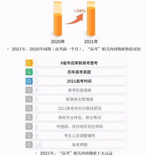 在过不久,2021的高考就到来了,那么对于莘莘学子们,他们最关注的话题都有哪些呢?今天我们就从《百度2021高考搜索大数据》报告来了解一下吧。